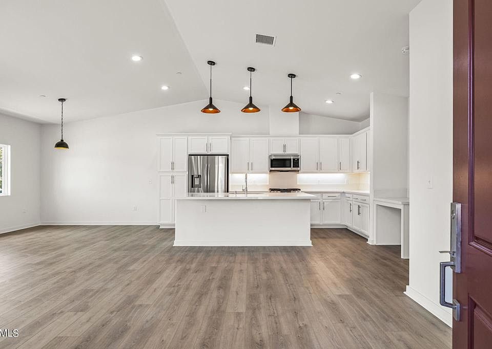 LENDER AND BUILDER INCENTIVES AVAILABLE! OUR FINAL PHASE! VA APPROVED! Welcome home to Magnolia Court, a brand-new condominium development located in the heart of Oxnard's historical district. The Magnolia Court community will include 40 units, consisting of 10, four unit buildings each with 2- 2-bedroom ground floor units, and 2- 3-bedroom upstairs units. The architectural exterior design is Craftsman style, in line with the surrounding historical neighborhood. This unit is our ''Plan D'' condominium featuring three bedrooms and two FULL bathrooms, as well as a private 2 car garage located below. The open concept kitchen, dining and living areas feature vaulted ceilings and flow into a private patio, perfect for enjoying the sunset. Kitchen features white cabinets and a large island with white quartz countertops as well as stainless steel appliances including range, microwave and dishwasher. Built-in desk near the kitchen area perfectly situated for working from home. Large main bedroom features a walk-in closet and an en-suite bathroom which includes dual vanity sinks, Delta branded fixtures and white sandstone quartz countertops. Additional standard features include high-quality Milgard windows and sliding glass doors used throughout, dedicated laundry room, recessed lighting in the kitchen, bathrooms and dining area, Smarthome technology throughout the home and vinyl plank flooring in the main living areas with carpeting in the bedrooms. Buyers can choose upgrades through the design center at an additional cost (avail for upgrades will be based on the timeframe for closing.) Built by Aldersgate Investment, a full-service real estate development and construction firm with a proven track record of quality projects throughout Ventura County. Est completion is April of 2024.