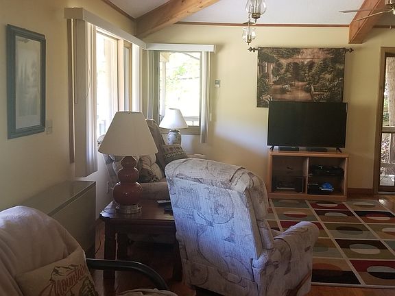MOTIVATED SELLER!! Property Overview - RIVERFRONT RETREAT... 227 feet of New River frontage, with new paint and new timber-framed decks make this the perfect New River retreat. Wonderful open home with all new appliances in kitchen and a beautiful gas log fireplace for all to enjoy. Stone landscaped areas with wrap-around, covered deck that is surrounded by beautiful rock outcroppings overlooking the river. This home was built for entertaining with it's open spaces and river views. Nice bedrooms all with big views of the river and cedar closets. Outbuilding for river toy storage. Plenty of parking with a large flat yard. Beautiful rock walls and rock outcroppings frame this one-of-a kind river retreat. Furnished with some exceptions. ETS Heat system/ mini split systems up stairs and down stairs. Move in ready. Please call, text or email to schedule an appointment.