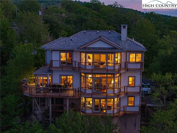 "Welcome to Ash Cliff Manor," the epitome of luxury mountain living, perched high at 5,200' on the desirable Pinnacle Ridge on Beech Mountain. This magnificent residence offers breathtaking MULTI-STATE views spanning from Grandfather Mountain into Virginia & Tennessee. The views are so expansive that you cannot capture the vastness on camera! No other home on the market offers views of Grandfather Mtn, Beech Mountain ski slopes, Lake Coffey, Golf Course, Virginia & TN! Homes on Pinnacle Ridge are a rare find, making this area the most desirable due to its high elevation & UNPARALLELED views. Spanning an impressive 4,507 square feet, this spacious home is thoughtfully designed across 3 levels w/ each room oriented to showcase the views. Inside, you'll discover 3 BEDROOM SUITES & 4.5 BATHS, complemented by 2 family rooms w/ wood-burning fireplaces. For entertainment, there are 2 game rooms, a cellar w/ poker table & sauna. The main level features the family room w/ a wood burning fireplace & rustic wood flooring. The kitchen is a chef’s dream w/ leathered granite counters, stainless appliances, a gas range & wall oven. From the kitchen, step into the sunroom where sunlight floods the space & leads to the expansive rear deck. The main level also has a luxurious bedroom suite, a game room w/ pool table & a convenient 1/2 bath for guests. Ascend to the upper level, you’ll find 2 add'l bedroom suites, each offering spectacular views to be enjoyed while drinking morning coffee or evening stargazing. Descending to the lower level, you’ll find a 2nd family room w/ wood-burning fireplace, a game room featuring a popcorn machine, along with a 1/2 bath. Don't miss the cellar below, furnished w/ a poker table & a portable sauna, making it the perfect retreat for hosting poker nights. This exquisite home won't last long & is being sold fully furnished w/ CURRENT Beech Mountain Club membership. "Ash Cliff Manor" has IMPRESSIVE rental income - 2024 - $75K & 2025 YTD - $38K.