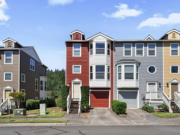 Delight in your view of the expansive creek, wetlands and green space from the deck and back yard of this great townhome. Enjoy your morning coffee while listening to bird songs and watching beavers, herons and other wildlife, then colorful evening sunsets beyond the green space view. Being an end unit, this home has many windows making it light and bright throughout. The ground level features a bedroom with bay window (no closet) and half bath plus spacious tandem garage with access to the fenced in back yard. On the middle level you will find a great room floor plan including living room with gas fireplace, high ceilings, bay window, built-ins plus sliding door to the deck and an extensive green space view. The open kitchen boasts spacious counters, a large pantry and dining room. Range and brand new refrigerator included! Upstairs includes the primary bedroom suite with bay window, full bath and walk in closet and second bedroom, both with vaulted ceilings, attic storage and laundry. Additional features include: custom window coverings, new roof, new deck, new exterior paint and some new windows. 1 year APHW home warranty at closing. HOA $225/mo. This home is in a great location. Backs to Green Space/Creek and the Gresham - Fairview Trail with access to the Springwater Trail for walking or biking but only 1.25 miles from shopping, dining, banking and more. Short distance to the bus lines on Powell, East access to Gresham, Happy Valley and I-84. Courtesy to buyer brokers.