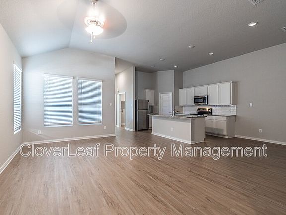 Low Deposit Option*. Beautifully built 3-bedroom, 2-bath home with 1,484 sq ft of modern living space in the sought-after Amanda Park community. This home offers an open-concept layout featuring a stylish kitchen with granite countertops, and a large island. Enjoy the comfort of central heating and cooling, ceiling fans, and a combination of carpet and luxury vinyl plank flooring throughout. The spacious primary suite includes a private bath and walk-in closet. Step outside to a covered patio and fenced backyard, ideal for relaxing or weekend gatherings. Additional highlights include a two-car garage and a prime location within the Medina Valley ISD, close to shopping, dining, and major highways.$35 mo. Fee in Lieu of Dep*.