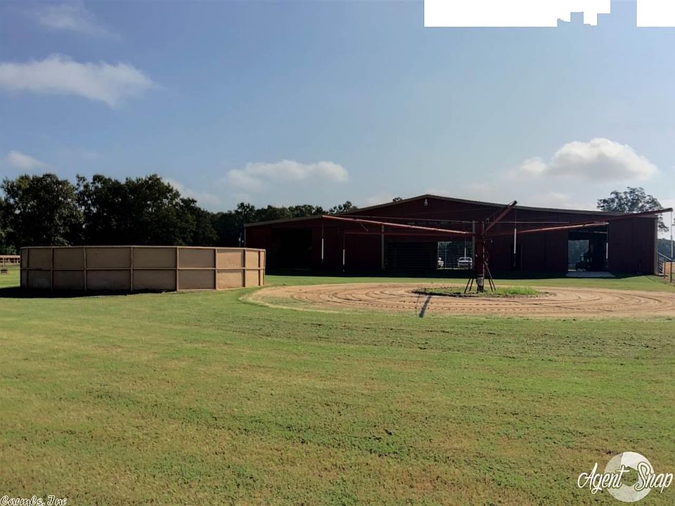 Horse/Cattle farm on approx. 78 acres. 80x110 barn has 7 stalls, laundry room w/1/2 bath, feed room, tack/saddle room, 2 stall wash area, 80x50 inside arena and hay storage area. Lighted outside arena, 200' round pen all sand, working corral, breaking pen, 6 run out pens w/ water, shavings ben, sorting pen & chute for cattle. Approx. 52 acres has been cut for hay. Pipe & sucker fence, 6 strand barb wire fence 5' tall. There is a place built up for your dream home. Single wide to convey @ no value