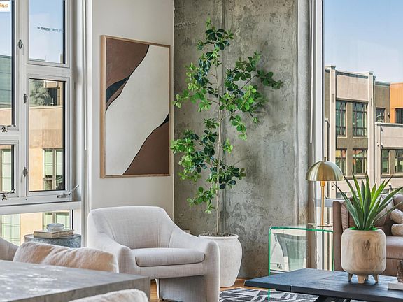 Fabulous luxury corner condo on the 8th floor with amazing urban vibes. Super modern interior with high concrete ceilings and floor to ceiling windows on two sides of the building, with cool city views. The Sierra is a full service building with 24 hr. front desk/security featuring luxury amenities such as pool, sauna, a serious-workout gym, and a party room with billiard table. Bart, Ferry, Amtrak, and freeway are all nearby, for easy commute. The super modern interior is sunny with high ceiling and open, perfect for the urban lifestyle.