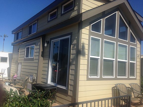A park mobile RV ideally situated a block away from the beach. 2 stories with a corner lot. Private parking is available in addition to street parking. Extra storage and a custom built shed with a washer dryer. Front and side patios perfect to enjoy the ocean breeze. Walking distance to fine dining and harbor. Easy access to coaster and Amtrak that makes commuting very easy and affordable. The home offers a master bedroom with built in closets and a spacious kitchen. Ideally for a couple or small family with two loft bedrooms upstairs.