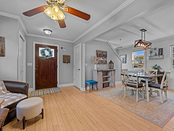 Downtown St. Charles Location with Fox River Views! This wonderfully renovated turn-of-the-century home blends contemporary style with historic charm. Beautiful masonry work welcomes you at the front entry and continues inside with a stacked-stone kitchen peninsula and matching accent wall in the family room. Features include a fully upgraded kitchen with an all stainless kitchen, granite counters, and bamboo floors. The vaulted ceiling family room offers gorgeous views and opens directly to a relaxing deck and fully fenced yard-perfect for entertaining or unwinding. The primary suite includes a walk-in closet, and both full bathrooms have been tastefully updated. Enjoy main-level laundry and a spacious basement for extra storage. Ideal location just steps away from the river, park/playground and and all the amenities of downtown St. Charles.
