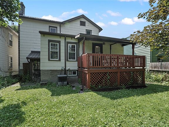 Situated in the heart of downtown Ithaca, this 3-bedroom, 2-bath home blends classic charm with modern comfort. Step into a bright and open front hallway that immediately feels warm and welcoming. The main level offers a spacious living room with large updated windows, a versatile bedroom or home office, and a full bath for easy convenience. The kitchen and formal dining room flow together seamlessly—ideal for gatherings and entertaining—while the back door opens to a covered porch overlooking the fenced backyard and raised garden bed. A walk-in pantry and access to the full walk-out basement add flexibility and function. The basement is clean, bright, and practical, featuring a laundry area and ample dry storage. Upstairs, you'll find two generously sized bedrooms and an additional full bath. Central air ensures year-round comfort, while a new roof, updated appliances, and fresh interior paint make this home truly move-in ready and low-maintenance. The welcoming front porch offers a perfect place to relax and enjoy the downtown energy. Just minutes from Cornell, Ithaca College, the Commons, local parks, and T-CAT bus stops, this home offers incredible access to all that downtown has to offer.