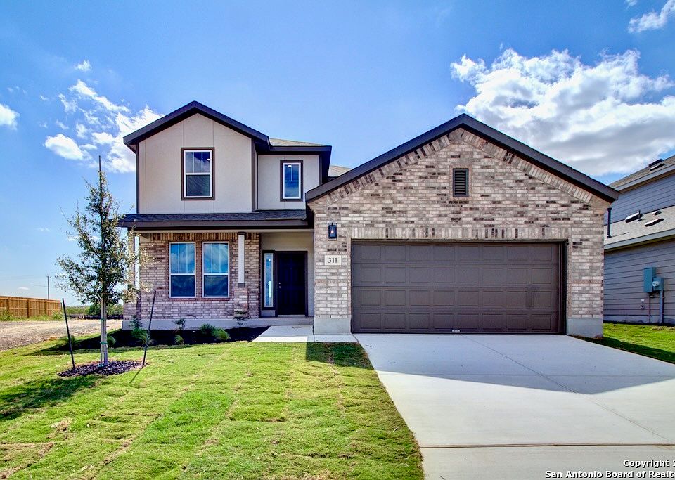 Welcome to the Southfork floor plan by DRB Homes, located in the highly anticipated Westridge community in West San Antonio! This spacious two story home offers 4 bedrooms, 2.5 bathrooms, and a dedicated home office perfect for remote work or study. The exterior showcases attractive brick accents and durable siding. Inside, enjoy modern finishes and a thoughtful layout that maximizes both space and functionality. Westridge is one of the new home communities near Lackland Air Force Base and Space Force Basic Military Training. Kitchen features omegastone countertops and stainless steel appliances. Planned community amenities include a pickleball court, pool, and playground great for staying active and enjoying time outdoors. With convenient access to HWY 211, Loop 1604, and I-35, commuting and travel are a breeze. Whether you're looking for space, location, or lifestyle, this Southfork plan delivers. Schedule your private tour today and make this beautiful new home yours!