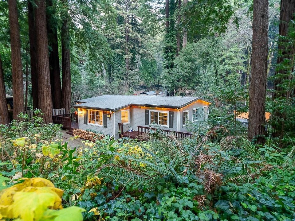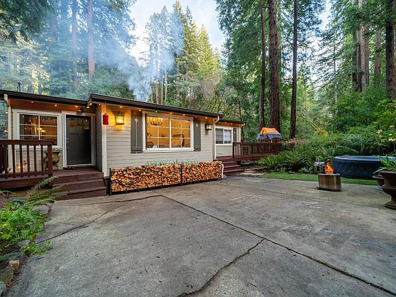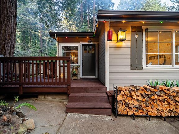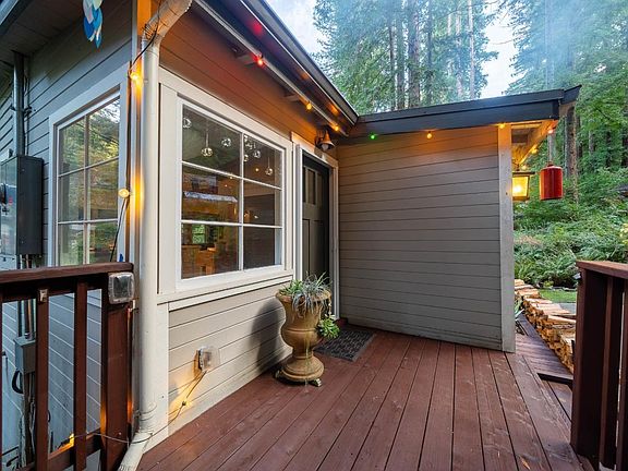 Discover the movie room below complete with laundry hookups, or great for repurposing for a charming art studio/office. The property includes a refurbished detached garage, paved driveway / 5 parking spots, on two parcels totaling approximately 1/4-acre lot. A $50/year HOA fee grants access to a picnic area with a swimming hole. Just 10 minutes from charming downtown Boulder Creek, 45 minutes to Santa Cruz or Silicon Valley, and only a 5-minute walk to the bus stop at Fern/Hwy 9.