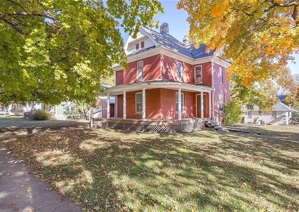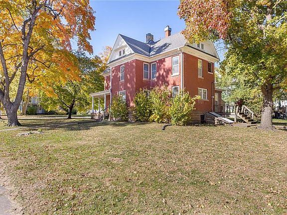 Welcome to Hiawatha, KS, the City of Maples and proud home of the Grand Halloween Parade, the longest-running continuous Halloween parade in America, dating back to 1914! This beautiful brick home features a charming wrap-around porch, two front doors, and is nestled on a picturesque corner lot surrounded by mature trees. Inside, you'll find a blank canvas ready for you to add your personal touch- an ideal opportunity to create your dream home. The residence offers plenty of natural light, original hardwood floors, along with unique woodwork and architectural details that exude character and charm. Priced to sell and awaiting your renovation ideas, this home presents a fantastic opportunity to make it uniquely yours. Come see it today and envision all the possibilities!