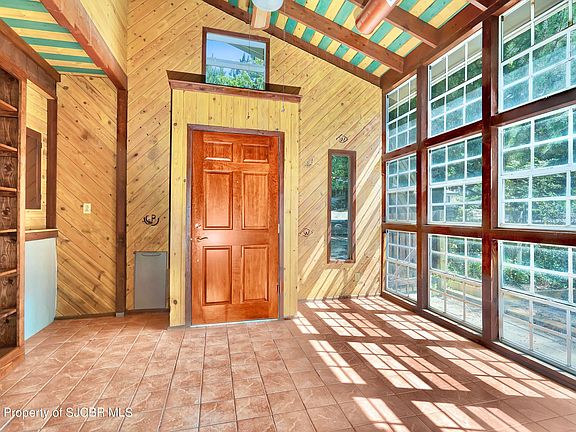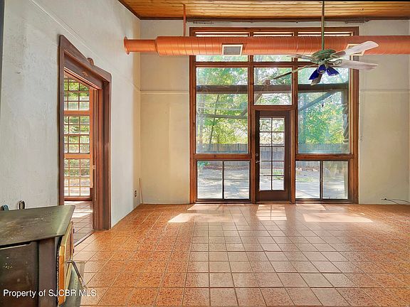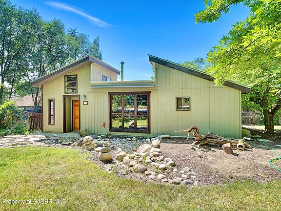 You will love this one of a kind home in the heart of Aztec. Truly spectacular park like setting with plenty of mature trees, raised garden beds, multiple storage sheds, and off street parking. The interior boasts character and charm. Nice master suite, with gas fireplace and access to back patio. Vaulted tongue and groove ceilings in the living area, wood burning stove and plenty of natural light throughout. Per seller ditch irrigation is available. Call for your private tour today!