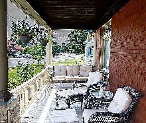 Step into timeless elegance with this stunning American Foursquare home, nestled in the award-winning Fort Thomas School District. Just a short stroll to Ruth Moyer Elementary, Highlands Middle & High School, parks, and the charming business district. Built in 1908, this 4-bed, 3.5-bath beauty blends original craftsmanship with modern upgrades. You'll love the 4 tiled fireplaces, tiger oak woodwork, pocket doors, stained glass, and gleaming hardwood floors. The home boasts high ceilings, generously sized rooms, and a welcoming front porch perfect for relaxing. The updated kitchen features granite countertops and new appliances, and the second-floor laundry adds convenience. With over 2,600 sq ft of living space, an unfinished basement, and large yard, there's room to grow, entertain, and enjoy. Located just ½ mile to Highland and Tower Parks, this move-in ready home combines historic charm with everyday comfort. Don't miss this rare gem!