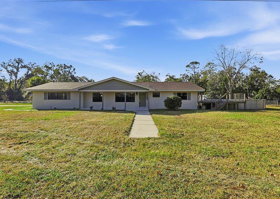 Spacious 3BR/2BA home on nearly 3/4 acre—entire city block—in the heart of Trenton! Solid concrete block & brick construction with a 2024 roof and 2025 HVAC. Interior offers large bedrooms, an open & functional layout, and a spacious kitchen with newer stainless appliances. Covered back lanai overlooks the fenced yard, above-ground pool, and wood deck—perfect for entertaining. Plenty of room for pets, gardening, or play. Includes 2-car garage & paved drive. Rare in-town privacy with quick access to top-rated Gilchrist County schools, the Suwannee River, and the Gulf Coast.