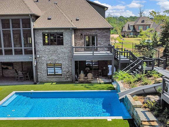 Discover luxury living at 311 Southledge Pl, a 5BR/5BA home with a finished basement and 2nd kitchen. Outdoor living shines with a heated saltwater Desjoyaux pool (Low-maintenance, eco-friendly pools with crystal-clear water) featuring a tanning ledge, LED lighting, water slide & bubblers. Custom flagstone patio to enjoy the serene lake view, three retaining walls (including one at the lake for fishing) and a newly stained deck with wrought iron and cable railing. Over $400k in exterior additions & upgrades. Inside, enjoy motion-sensor Lutron lighting, marble slabs in the laundry and wet bar, custom built-ins, and over $35K in designer lighting. The chef’s kitchen boasts high end appliances & custom zinc hood. Designed by Mantooth Interiors, furnishings, drapery, and shades (some app/remote-controlled) elevate the home’s style. Smart home integration manages lighting, music, climate, security, and doors, with exterior cameras remaining. A perfect blend of luxury, function, and comfort.