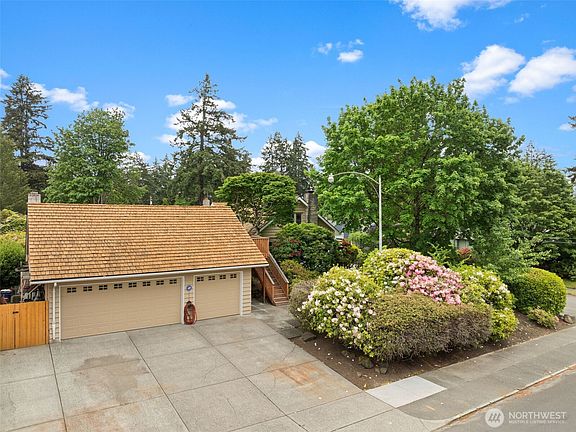 Corner lot w/ 2 options for multigen living/rental. Massive picture windows, ample natural light, 3 levels of maple hardwoods, bright skylights, 50 yr roof, AC, matching beko appliances & maple cabinets. Full bath on main & upper. Downstairs find an office, storage, laundry, AND 1 BED APARTMENT w/full kitchen, separate entrance & dedicated parking. Park-like landscaping w/hydrangeas, maples, curbed lush lawn, dog area, fully fenced backyard & wired cedar deck/gazebo. Giant detached 3 car garage/shop w/ own 1/2 bath, water heater, utility sink & second level w/ separate entrance that could be a perfect 2nd apartment. Short stroll/drive to shops, parks, playgrounds & Fircrest's public pool! Appraised at 910k, time for instant equity!