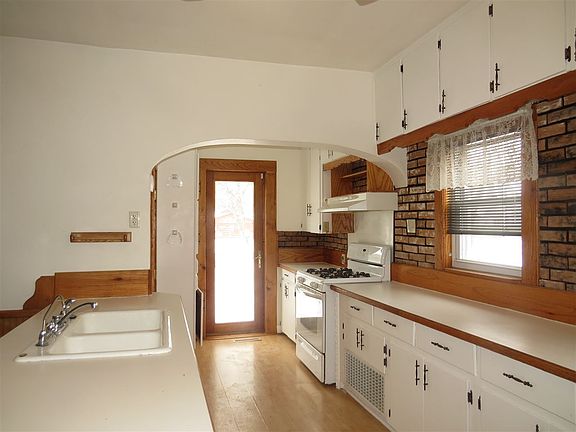 Step inside this fantastic 1 1/2 story home. Main floor offers spacious kitchen with ample cupboard and counter space, formal dining area, 1/2 bath, good size living room, office area and front porch. Upstairs offers 2 good size bedrooms and full bath. Lower level has laundry area and easy to finish. Outside has detached double garage and deck. 2 blocks away from park and low taxes. Don't miss out on this great buy!