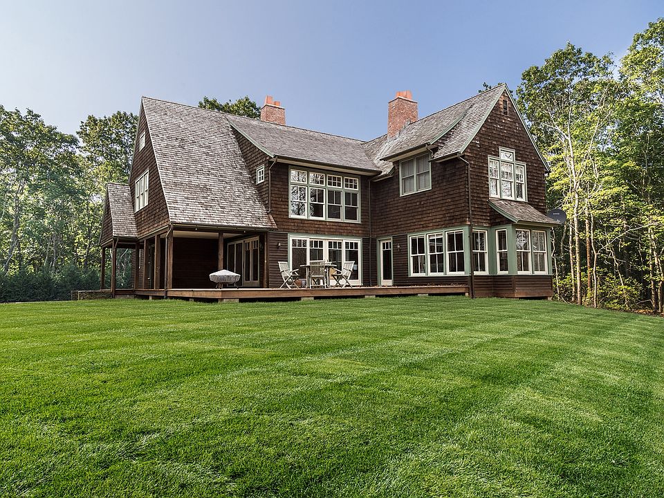 On 9.5+/- very private acres in Sag Harbor, this gracious home, designed by Kathryn Fee Architect, expresses the spirit of classic Hamptons architecture in its elegant, clean lines. The graceful two-story home offers 3,000+/- sq. ft. of living space with four bedrooms and three baths. Amenities include three fireplaces, expansive decking and porches, and an attached two-car garage. There is ample room for expansion, a pool and tennis. Enjoy peaceful seclusion here, or get to Sag Harbor Village, East Hampton and beaches in minutes.