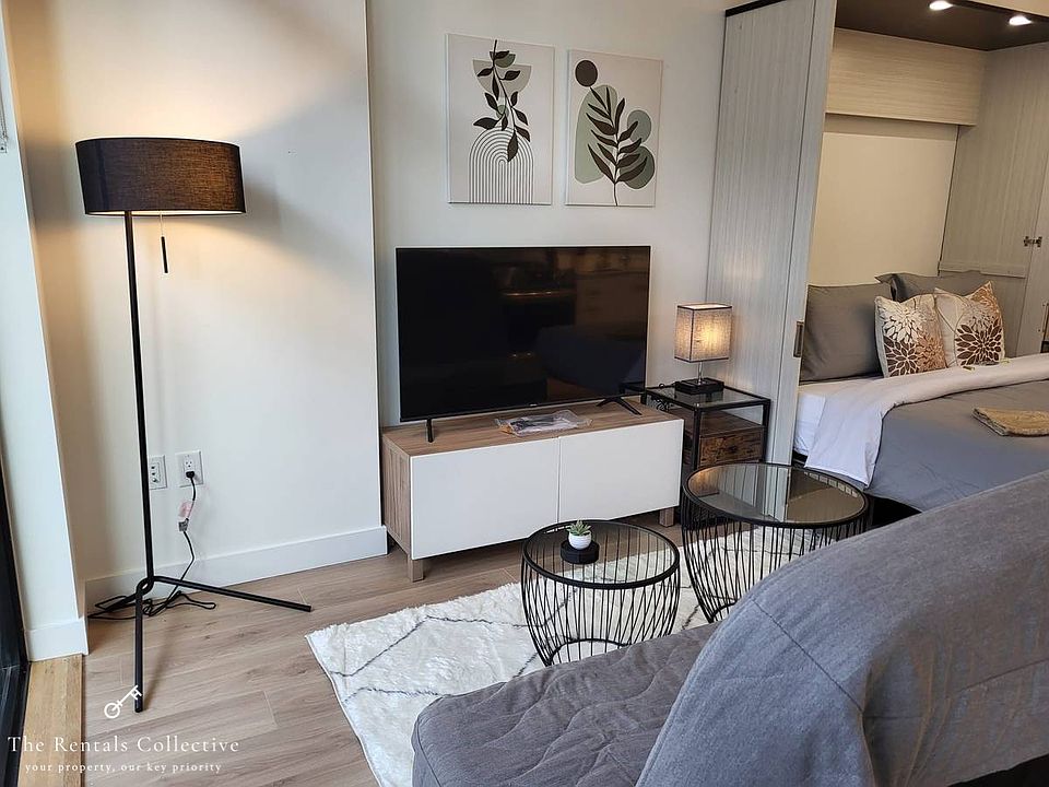 High ceilingsSmart layoutQueen murphy bedFully equipped kitchenIn-suite laundrySmall storage lockerPrivate front entrance