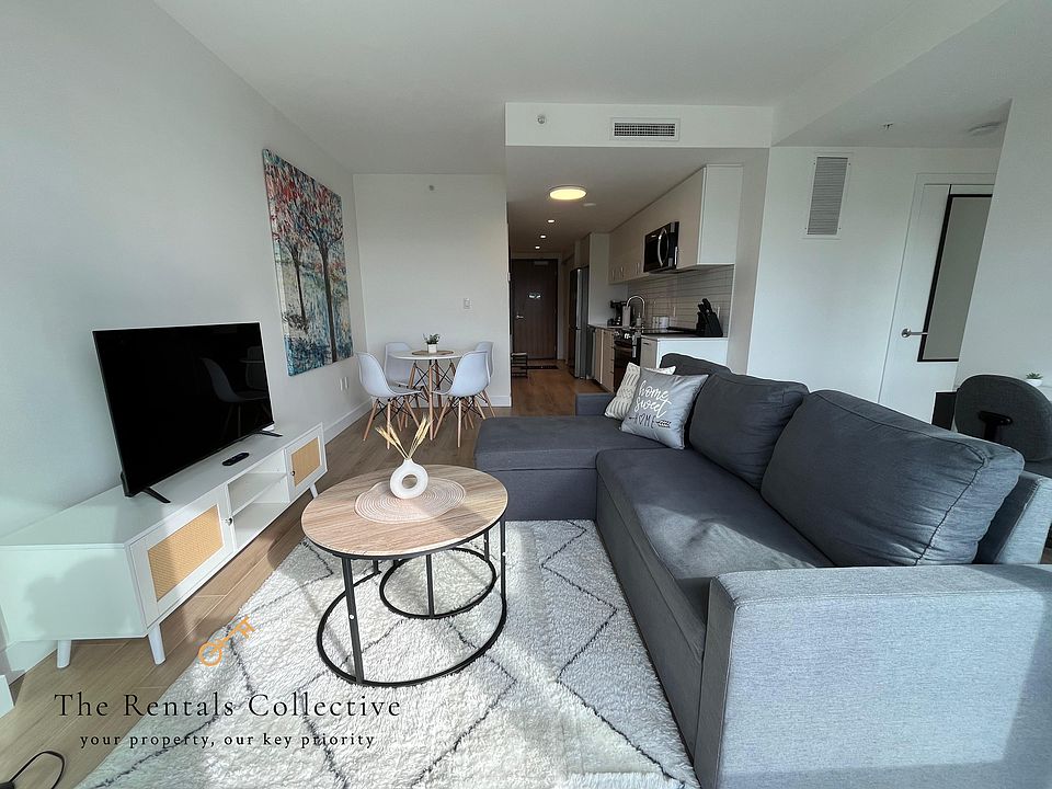 Experience modern comfort in this fully furnished 1-bedroom suite, featuring tasteful contemporary decor and a spacious 98 sq. ft. balcony with partial water views perfect for morning coffee or evening relaxation.