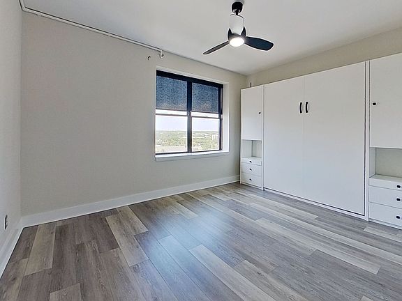 Corner viewRenovated unitSpacious bedroomTile plank flooring