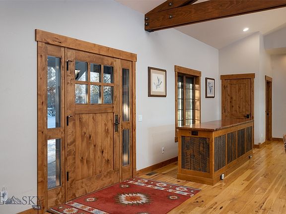This may just be the finest home in the town of Ennis! It was built to the highest standards, with the very best quality materials, systems and appliances. A few alterations were made by this second owner, who also had the “bunkhouse” built in at the back end of the garage, which is not included in the total square footage, as it is not contiguous to the main house. The home is picture-perfect & ready to move in, whether just for vacations or full-time living. Flooring is rough-hewn hickory, heat is in-floor radiant with new boiler in 2021, exterior is constructed of native stone wainscoting & Prairie wood cedar siding, which was re-stained in 2021. The entire east side of the home has full-length windows & glass doors which let in the natural light & stunning mountain views. These Pella Designer series windows have between-the-glass blinds. Kitchen has a 48" Wolf Range/hood, SubZero fridge, Bosch dishwasher, granite counters, a sidebar with wine fridge and large island with sink.