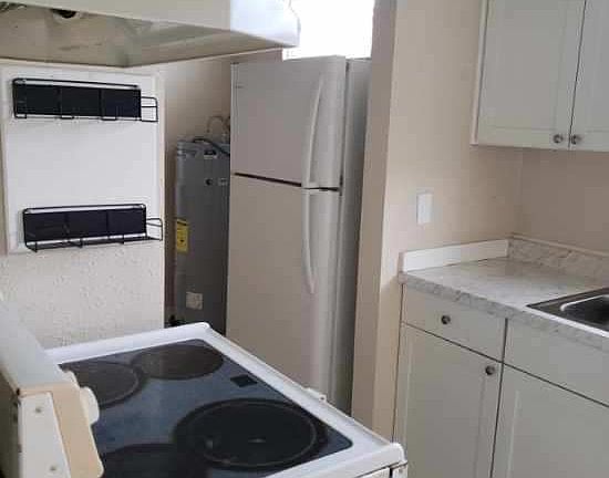 Upstairs unit with balcony, freshly painted interior, recently remodeled, new kitchen cabinets, includes window unit A/C, refrigerator and stove . Close to nearby public transport, schools, US Hwy 98 and SR 92 intersection. Public park across the street and nearby fast food restaurants within walking distance.
