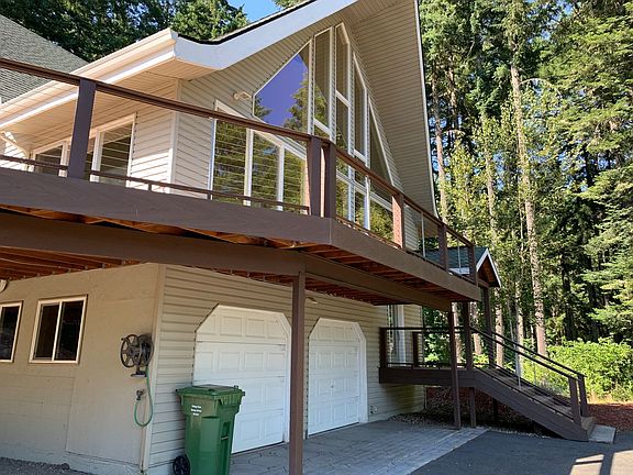 The living room has beautiful views, tall ceilings and two doors to the deck! The large deck wraps around 3 sides of the house.