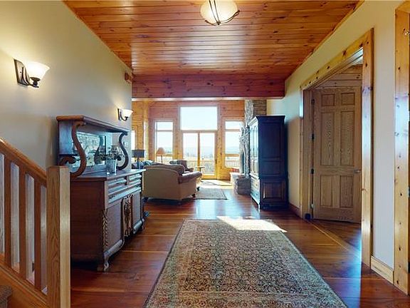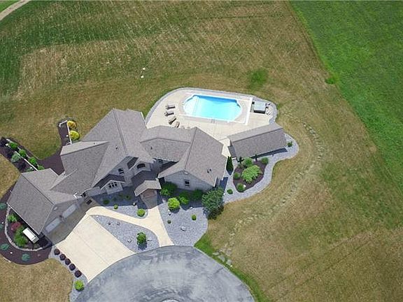 Sitting on 103 scenic acres, this stunning modern home and working farm will impress from the first drive up the driveway. This stunning 5 bedroom, 3 f/ bathroom and 2 h/ bathroom home includes vaulted ceilings, open floor plan, expansive windows and a warm atmosphere. Kitchen features top-of-line appliances, granite counters, custom cabinets. Natural light washes over the entire beautiful interior.Living room is anchored by a 2story stone fireplace. Dining room is perfect for any meal, large or small. Luxury bath, dressing area with built-in makeup vanity, 2walk-in closets, sitting room make the first-floor owner's suite a dream.Lower level with its large bar, wine cellar and family room will make you want to stay indoors. Inground pool creates your own private oasis.Acreage includes a 95 acre working farm. 2story barn is surrounded by fenced-in pastures and livestock weather shelters. Two newer pole buildings are perfect for storing anything. Heated garage with 1/2 bath.