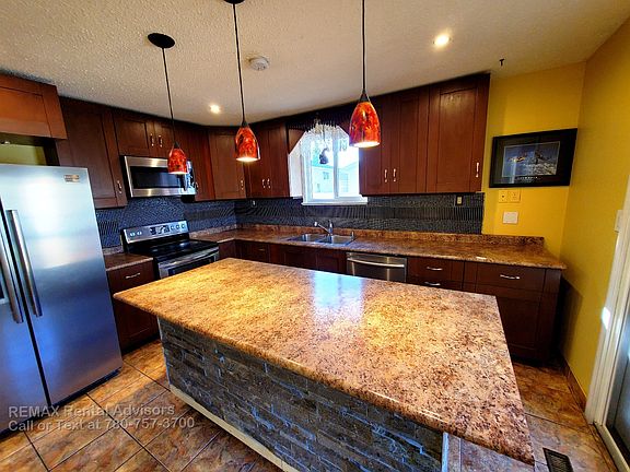 This wonderful home is approximately 1,240 sq ft and features 4 bedrooms, 2 bathrooms, and a double garage. Home is ideally located in the quieter and respectful community of Belmont. The nearby major roads are Victoria Trail and 137 Ave, with easy access to the Queen Elizabeth Highway 2, and it is close to shopping, transportation, and schools.