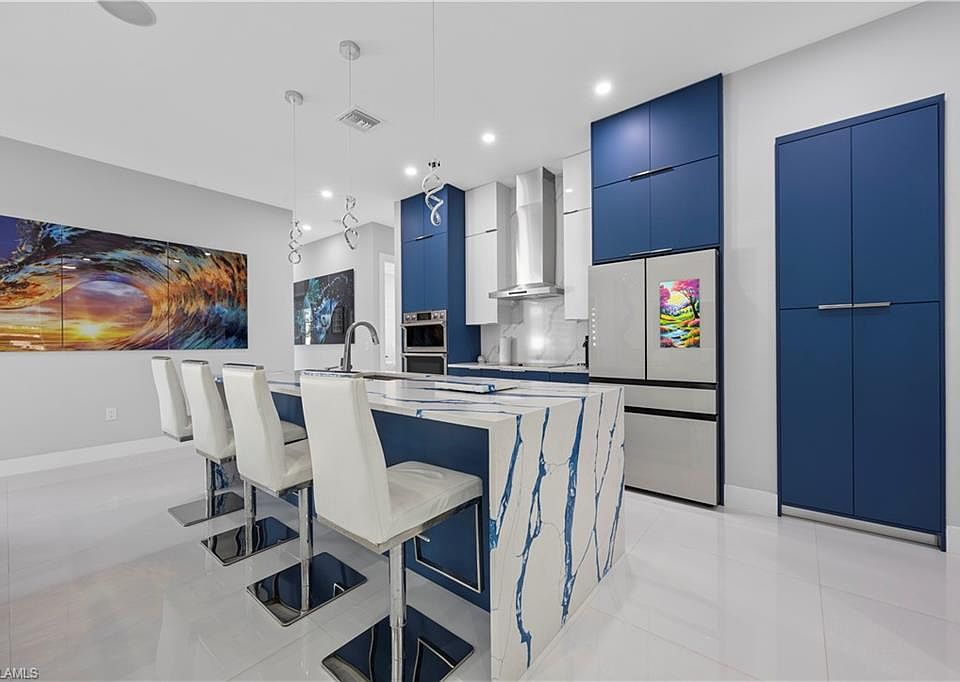 Step into modern luxury with this fully customized home that feels like brand-new construction. Featuring 3-bedroom plus 2 dens, 3-bathroom. Every detail has been thoughtfully designed and meticulously cared for, offering both elegance and functionality. Inside, the open-concept layout is enhanced by impact windows and doors, 89 smart lights throughout the home controlled with Alexa, and an embedded Yamaha surround sound system with five ceiling speakers in the living room. The living room showcases a custom TV wall accommodating up to 85", retractable sliding glass doors that open fully to the lanai, and electronic blinds for added convenience. The chef’s kitchen is a true centerpiece, boasting an oversized quartz island with wireless charging outlets, floor-to-ceiling custom cabinetry, a deep hidden pantry, bespoke smart appliances with customizable panels, and a touch and voice-controlled faucet paired with a 32” stainless steel sink. Bathrooms feature quartz countertops, motion-operated LED mirrors, Delta stainless hardware, and in the primary suite, a deep soaking tub and custom closet system. Outdoor living is just as impressive with a heated pool featuring a smart lighting and pump system, a paved backyard, a lanai with Bluetooth ceiling speakers, and a seamless flow between indoor and outdoor spaces. The home also includes a patterned concrete and grass driveway, sprinkler system, two mango trees, and a marble dolphin sculpture valued at $15K. Smart-home enthusiasts will appreciate the Nest thermostat, pre-wired internet and cable throughout, an ethernet switch with backup power, and an extensive surveillance system with 11 cameras that allows for real-time viewing and up to 30 days of recording. The Ring camera operates separately from the surveillance system and requires its own app and subscription, and the total of 11 cameras includes both the Ring and the smart garage camera. Additional upgrades include a smart garage system with camera, impact-rated garage door, external generator hookup, and a whole-house reverse osmosis water system. Practical features such as a retractable attic ladder, a concrete side path for garage and bin access, and remote-controlled fans in all rooms complete the thoughtful design. This is more than a home, it’s a lifestyle, blending luxury, technology, and comfort in one extraordinary package.