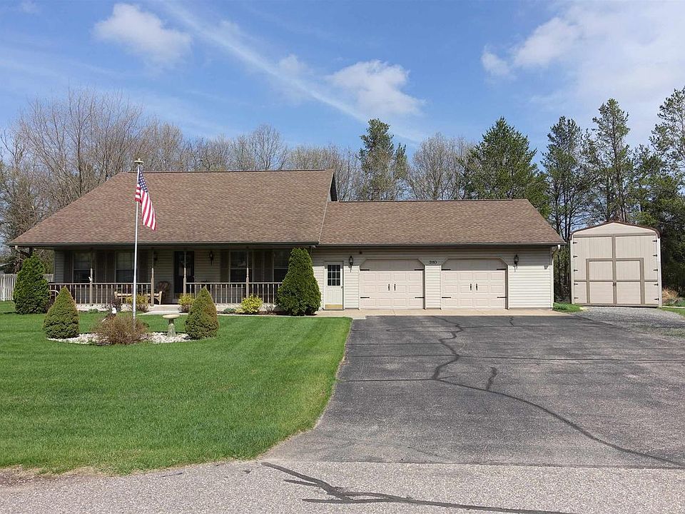 Beautiful Cape Cod home on large 0.54-acre lot in the Village of Plover. This home is in great condition and well maintained with numerous updates and extras. Main level feature large living room with vaulted ceiling, open staircase, and fireplace. The kitchen has granite island, wine and coffee bar with wine cooler, newer range, refrigerator, microwave, and dishwasher all included. Dining area with patio doors leading to large deck. Large first floor primary bedroom with beautifully redone full bathroom with washer and dryer hook-ups and walk-in closet. The upper level has a second full bathroom and two generous bedrooms, each with double closets. Awesome lower level features the family room plus media room that includes the seating areas, TV, speakers and surround sound system. Some of the updates include freshly painted interior 2021, water heater 2019, furnace 2014, roof shingles 2014, new gutter?s 2015, newer sidewalk, all toilets have been replaced. RV Barn is 40ft x 14ft x 14ft height, perfect for your RV or other toys.,The attached garage is oversized (28ft x 32ft) and has new garage doors with openers. Nice 16ft x 8ft garden shed, yard fenced on two side. Great lawn and landscaping have underground sprinklers with a private well. It has a very nice gazebo, large deck, stone patio area and natural gas connection for grilling. Inviting covered front porch with seating areas. Pride of ownership shows throughout.