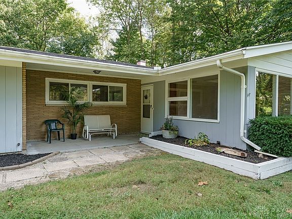 Whether you call it a rambling ranch, mid-century modern, or a California style ranch house, this home has only been called a home by two owners since 1956. It offers 1,429 square feet of living space on one level, with 3 nice sized bedrooms, and the ability to add back a fourth bedroom off the dining area. There are 2 full baths with the home, and every room is bathed with natural light with the large windows. There is a floor to ceiling wall of windows that leads you out onto a 12x20 private patio area. A two car, attached garage, with storage, and a covered 9x15 carport, along with the 12x16 barn, gives the next owner plenty of area for parking and storage. This home sits on almost an acre, and, with a good variety of mature trees on the partially wooded lot it offers plenty of outdoor space to enjoy. Sought after and a rare find in today's market, this well loved home on a dead end road with only 11 other homes, each on large lots and in the Bellbrook/Sugarcreek school system is one that you don't want to miss. The additional bonus is ease of quick access to I-675, and within a 5 minute drive to shopping, restaurants and your favorite coffee shop.