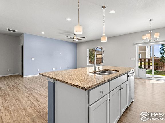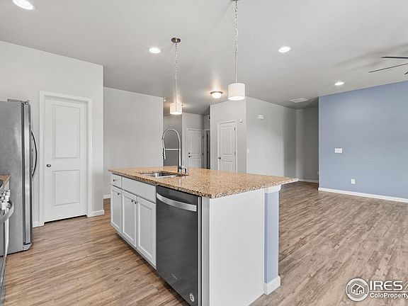 Welcome home to this beautiful 3 bed, 2 bath home built in 2018! Featuring an open floor plan, the kitchen, dining, and living areas flow seamlessly together - perfect for everyday living and entertaining. The kitchen features sleek stone countertops, SS appliances, and generous prep space for cooking. The primary suite offers a private retreat, while two additional bedrooms provide plenty of flexibility for guests, a home office, or hobbies. Step outside to your own backyard oasis! Enjoy a fully fenced yard, large covered patio, and a hot tub - ideal for relaxing, entertaining, or simply soaking up Colorado's sunshine. Sitting on a spacious corner lot, you'll have extra outdoor space for gardening or play. Close to grocery, shopping, and dining - making life convenient and comfortable.