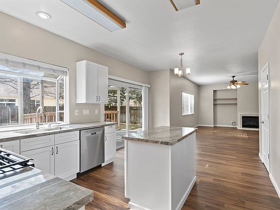 The main level has been remodeled with new vinyl plank flooring as well as updated lighting and outlets. The kitchen is gorgeous with all the natural light, updated with new Quartz counters, cabinets, soft close doors and drawers, stainless appliances, sink, faucet, and garbage disposal. Enjoy the family room with views of the creek and a cozy fireplace for the colder months. The master bed and bath have been upgraded with vinyl plank flooring, new shower, and custom walk-in closet. 3 upstairs bedrooms have brand new carpet while the guest bathroom has also been recently updated. The backyard has been meticulously maintained with 2 fruit trees, raised garden beds including raspberries, blueberries, strawberries, grapes (green and red) and asparagus! Home also comes with a Ring security system that includes 3 cameras, door sensors and a smart garage door opener. HOA amenities include a private park, walking path, outdoor pool, clubhouse, and tennis courts.