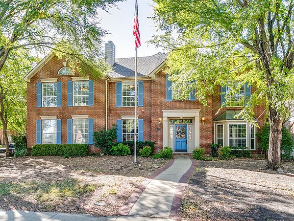 Located on a beautiful, treed cul-de-sac, this spacious Grapevine home offers endless potential in one of the area’s most sought-after neighborhoods within Grapevine-Colleyville ISD. Enjoy the convenience of being just minutes from schools, dining, shopping, and entertainment, with DFW Airport only about 15 minutes away. Featuring an exceptional floor plan, this home includes four bedrooms, three and one-half baths, three living areas, two dining areas, and a private study providing plenty of space and flexibility. As you enter, you are greeted by a spacious formal dining and living room with a bay window perfect for entertaining family and friends and a private office or study. The kitchen features stainless steel appliances, a butler’s pantry, generous counter space, an island, and an office nook with a built-in desk. The refrigerator remains with the home. The kitchen opens to a bright breakfast room with plantation shutters and to the spacious den, complete with built-in shelving surrounding the fireplace, a wall of windows, and a ceiling fan. Upstairs, the primary suite is expansive and includes a dual-sided fireplace that opens to an adjoining office or private sitting area with a wet bar. The ensuite bath features double vanities, a separate shower, jetted soaking tub, and a large walk-in closet. An upstairs game room offers a wet bar and cabinetry perfect for entertaining or relaxing. Three additional bedrooms and two full baths complete the second level. One bedroom and bath are split from the others, providing privacy for guests or extended family. Outside, enjoy a large backyard with mature trees, ideal for gardening, entertaining, or outdoor activities. A storage shed with electricity provides extra space for tools or hobbies. This home has had only two owners and is ready for your updates and personal touch. Bring your decorating ideas and make this property shine again! Convenient Grapevine location close to everything!! No survey