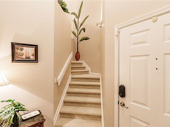 Spectacular coach home with a Lake and golf course view and Eastern exposure with multiple upgrades. This is a MUST see. A Brand new roof installed in 2020. New A/C installed in 2020. Recently painted inside, updated light fixtures and fans. Plantation shutters in all the windows. It features neutral colors throughout, newer stainless steel appliances in Kitchen with nice backsplash, new carpet on stairs and bedrooms and tile throughout the remainder of the home. Rooms are spacious and very bright. Lanai is expansive and has Electric storm smart shutters. It is a perfect place to enjoy the wonderful views and relax in the evenings with a beverage or to enjoy in the morning with your coffee and paper. Idlewild has their own neighborhood pool within walking distance. The Verandah also offers amenities which include two 18 hole golf courses, tennis program with pro, fitness center with director and classes, spa services, community pool, very active activities calendar, formal and casual dining room, bar, kayaking, bocce, 9 miles of biking/walking paths, dog park and playground. Come secure your place in Paradise NOW!