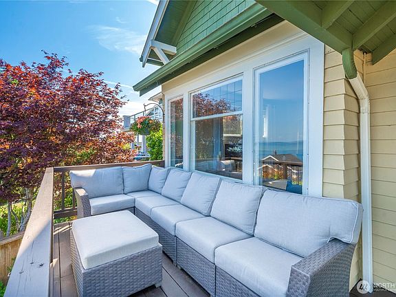 This is your chance to claim one of Tacoma’s best water views - without the million-dollar price tag. With unobstructed Commencement Bay vistas, timeless charm, and a prime location near Ruston Way, Point Defiance, and the Proctor District, this home delivers value and lifestyle. Inside, enjoy a cozy window seat, dining space, and functional kitchen. A main-floor bedroom and ¾ bath offer convenience, while upstairs adds a second living area, spacious bedroom and bathroom with a walk-in shower, and sunroom. Outside, relax on the deck with stunning views or private back patio. Added convenience with a detached 2-car garage with alley access with EV charging.