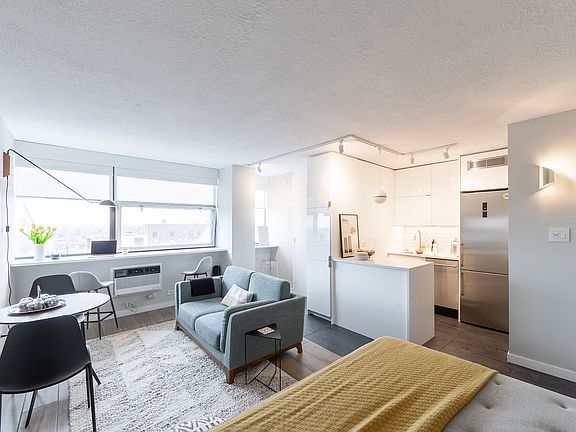 For real, for real, this one is beyond nice AND it comes with a prime garage parking space! What a showplace & spacious west facing studio in East Lakeview steps from the lakefront & all of the restaurants and shops of Broadway! Renovated to perfection with stand-out finishes, this sun-filled home features a striking & sleek white kitchen that is truly the centerpiece of the home. White lacquered cabinets include an appliance cabinet for your coffee bar. Quartz counters & geometric backsplash tiles add sophistication. Stainless steel Summit appliances include a dishwasher, fridge, & combo microwave+oven, while a portable induction cooktop is used for stovetop cooking and then conveniently stored away to save counter space. The bathroom offers a blue subway tile tub/shower surround and half-glass shower door, along with white cabinets and quartz counter vanity. A quartz work shelf lines the wall of windows for the ideal work-from home space, while a mounted Samsung Picture Frame TV allows for tv watching or displaying digital artwork. A large walk-in closet is completely organized with Elfa shelving systems, while the ceramic tiles on the floor contrast between the wood-patterned living space and the grey kitchen and bathroom spaces. Everything has been cleverly designed with an eye toward sophistication and fun at a level you will rarely see in a studio home. And did I mention this comes with a garage parking space that is so convenient to the elevator area, oversized, and has no one on either side of it? I want to live here!! Building features include a sundeck and rooftop pool (season fee), updated laundry room, & bike room. Bus stops for the 134, 143, 151 & 156 are literally just outside the lobby door, with the 146 a mere 1.25 blocks away. Dog friendly building which is awesome since there is all that park space to run the dog around in! Note, buyer must live in the unit for 24 months before qualifying to be able to rent the unit out. Such a great home & great investment in a top tier location!