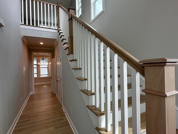 Discover the ''Live Oak'' Country Chic elevation by Robuck Homes—a thoughtfully designed two-story villa offering modern comfort and timeless style. Nestled on a picturesque homesite overlooking the tranquil community pond, this home combines breathtaking views with exceptional design. The first floor features a spacious primary suite complete with a walk-in closet and a luxurious bathroom, including a large tiled walk-in shower and dual vanities. The open-concept living and dining areas flow seamlessly into the gourmet kitchen, which boasts full-overlay cabinetry, a chic tile backsplash, solid surface countertops, and a stainless steel Frigidaire appliance package. Upstairs, you'll find three additional bedrooms and an open loft—perfect for a home office, play area, or entertainment space.