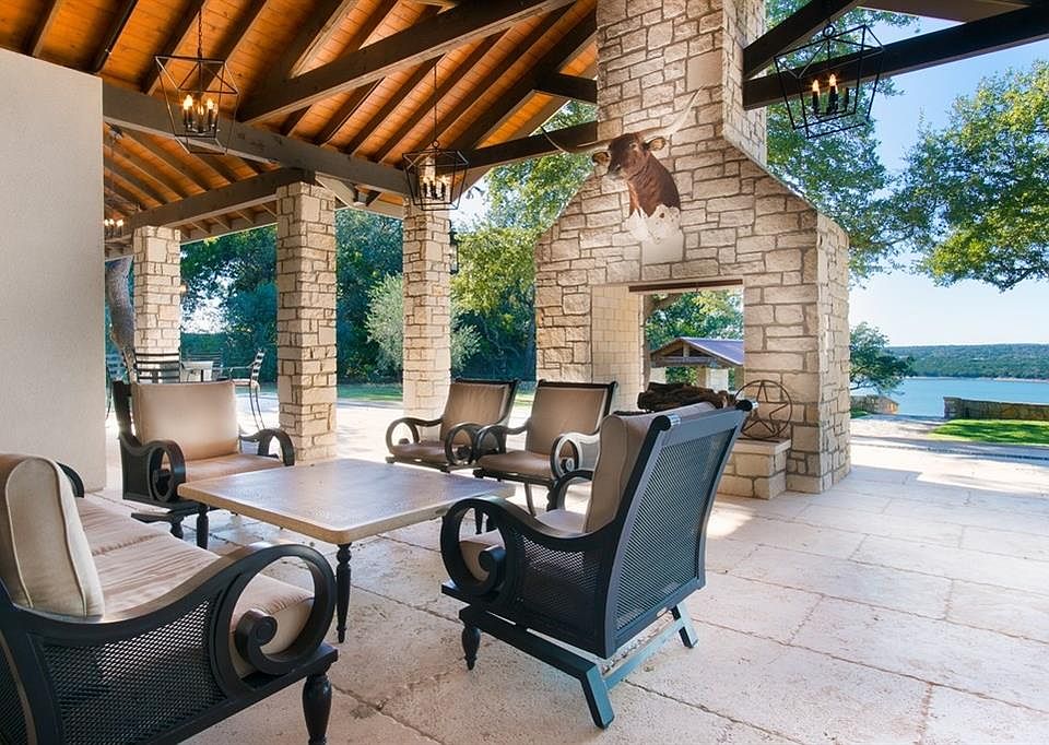 With an open layout and a cultured approach, this house represents the leading aesthetic for a Modern Rustic home. The recent to-the-ground re-build and expansion was done with meticulous attention to detail and completed with extraordinary finishes including expansive travertine, Canadian alder doors and trim, a custom kitchen with a large center island and sliding glass wall systems exposing panoramic Lake Travis views. The home's original charm was preserved with exposed timber ceiling trusses and immense double fireplace in the Great Room. This 3.4 acre, gated Waterfront Estate includes the main home, a fully restored Guest house from the 1800s, a detached exercise studio, five car garage, tram to the lake, boat dock and pool. This property is a must-see for those looking for the refined elegance of Lake front living.