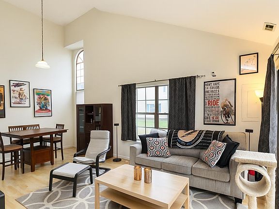 Galley-style kitchenSoaring cathedral ceilingTwo closetsSpacious bedroomWarm townhome feelEnd-unit condoAccess to community pools