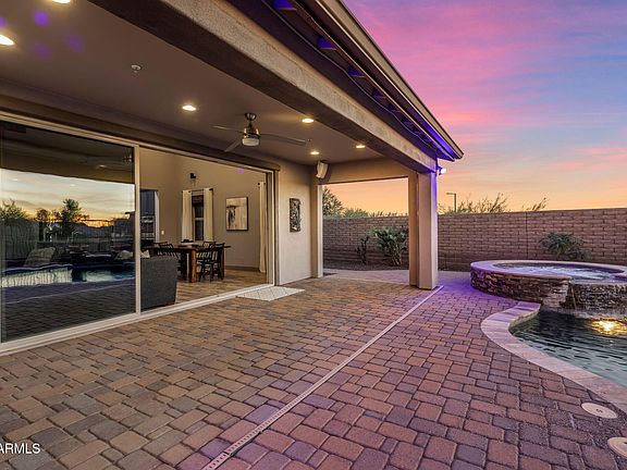 Located on a private cul-de-sac in NW Peoria, this stunning home features 4 bedrooms, 3 baths, office and loft. A 9,200 sq ft lot that backs to a wash for privacy. Enjoy an updated interior with tile plank flooring, new paint, a spacious kitchen with double ovens, gas cooktop, and a large walk-in pantry. The primary suite and a guest bedroom are conveniently on the main level. Step outside to a backyard oasis with extensive patio & a brand-new pool heater. Newer hot water heater, fruit trees,R.V gate and outdoor speakers. Extras include a 3-car garage, water softener, and Tesla pre-wire. HOA: Mountain Vista Club with tennis, pickleball, 3 pools, hiking anwalking trails, indoor basketball court and play structure. Come experience why Vistancia has been voted the #1 Master Planned Community 10 years in a row! Please see the extensive feature list in the photos. Home Warranty included. 2 TV's, couch, counter stools, refrigerator, washer and dryer and shelves in office included if buyer desires.