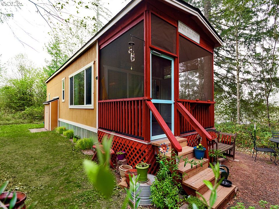 Check out this charming Tiny Home on leased land is 395 sq ft. This home has a private get-away type feel. You will love the feeling of being secluded while still being close to town. Lot of Storage. Lighting in the shed with a catio or shelter for your animals. With plenty of room to garden or bring your pets. Already hooked up to electrical, water and septic. Possible Air-B&B? Call seller for viewing.