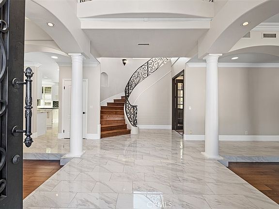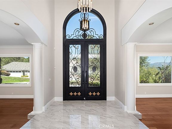 Panoramic views meet meticulous care and craftsmanship in this one-of-a-kind property, offering an elevated living experience both inside and out. Set on over an acre in the prestigious Rancho Colinas enclave of guard-gated Coto de Caza, this estate achieves a rare blend of privacy, style, and resort-style amenities. A striking 15-foot custom iron door sets the tone as you enter a space reimagined with over $500K in renovations, including new windows and doors throughout, a completely updated kitchen and bathrooms, and top-tier finishes that enhance every room. The main level features an expansive layout with formal living and dining areas, a guest bedroom, and a dedicated office. The renovated chef’s kitchen is equipped with top-tier appliances and SubZero Pro refrigerator, flowing seamlessly into the family room with an inviting fireplace and French doors leading outside. Upstairs, the primary suite offers a private retreat with a fireplace, spa-like bathroom, walk-in closet, and sweeping views. Three additional bedrooms and a versatile bonus room, complete with its own fireplace and wet bar, round out the second floor. The home’s outdoor spaces are equally captivating. A vineyard-lined pathway leads to a private gazebo at the top of the property, offering panoramic vistas that rank among the finest in Coto de Caza. The backyard is designed for both relaxation and entertainment, featuring a resort-style pool with a waterfall, waterslide, spa, and new equipment; an outdoor fireplace; built-in BBQ; sports court; and lush landscaping with over 75 cypress, palm, cactus and fruit-bearing trees. Additional upgrades include two updated HVAC systems, a new tankless water heater added in 2024, fully repiped plumbing, all new floors in 2022, and a renovated pool heater and pool filter/pump. Located on a tranquil cul-de-sac street, only moments from trails, parks, Coto Equestrian Preserve, and the shops and amenities of Rancho Santa Margarita Town Center, this home combines exclusivity with convenience. With extensive upgrades, priceless views, and a prime location, this estate unlocks a truly exceptional lifestyle.