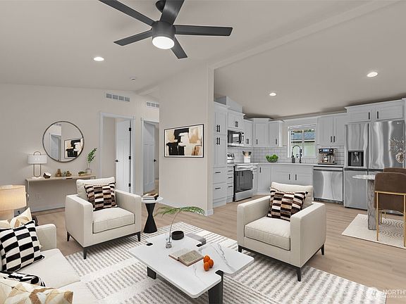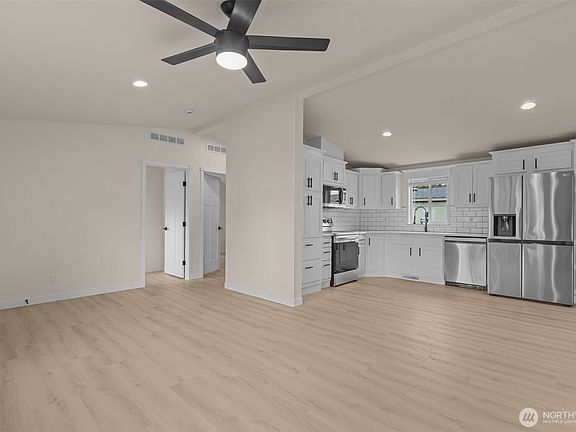 Welcome Home to this fully renovated 2021 manufactured home located in the all-ages Diamond Valley Community of Black Diamond, WA! This move-in ready home has been restored to its original beauty with brand-new flooring throughout, fresh interior paint, and updated landscaping. The kitchen features sleek stainless steel appliances and plenty of storage space, while the open floor plan provides a bright and inviting feel. The spacious primary suite includes a private bath with double sinks for added comfort. With every detail refreshed, this home is ready for its new owner to enjoy right away. Schedule a showing today!
