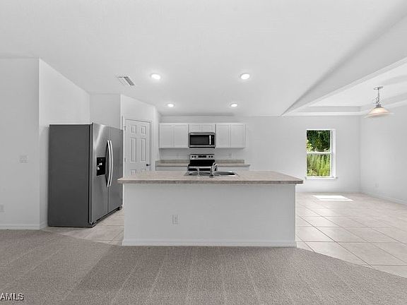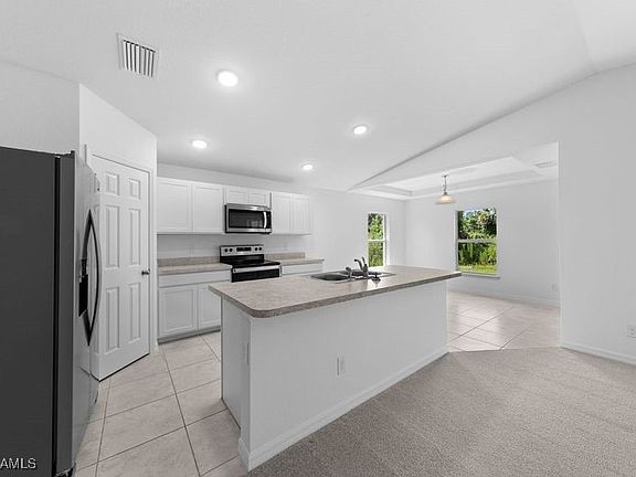 RESALE HOME. Beautiful 3 bedroom 2 Bath home. Built in 2022. Open floor plan with cathedral ceilings and center island kitchen. Features include: Concrete Block Construction, under truss lanai, Lenox high efficiency AC system, Moen plumbing fixtures, Dimensional Shingles, PGT Low E Insulated windows, 30” upper cabinets, stainless steel kitchen appliance package, irrigation system, water treatment system, tile in kitchen and baths, walk in shower in master bath.