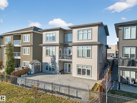 Discover this custom-built masterpiece in Royal Oaks, perfectly positioned minutes from Edmonton, Beaumont, and the International Airport. Spanning nearly 3,500 sq. ft., this stunning 2-storey walkout home with a triple car garage backs onto a trail and showcases luxurious upgrades throughout. The main floor features two master suites—ideal for multi-generational living—along with a half bath, an open-to-above living room, and a massive gourmet kitchen complemented by a full spice kitchen with premium appliances. The upper level offers four spacious bedrooms, including a lavish primary suite with a walkthrough closet and spa-inspired ensuite. Two bedrooms share a Jack & Jill bath, plus an additional full bath and bonus room overlooking the living area below. With a fully concrete backyard, walkout basement, and elegant custom finishes, this home redefines comfort and functionality for large families.
