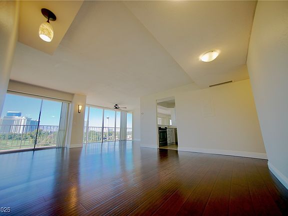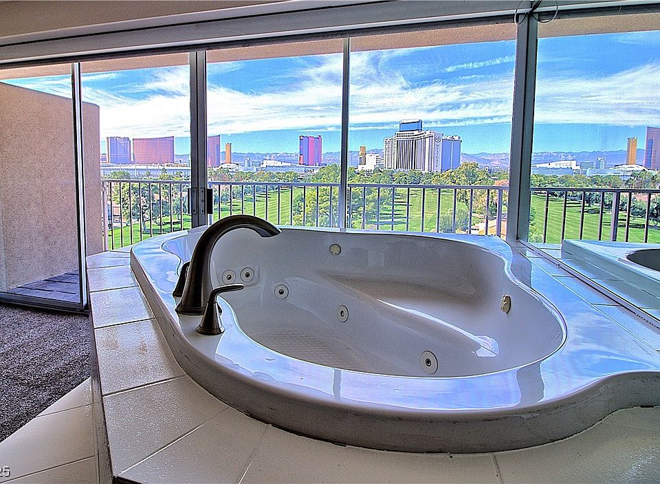Elevated Living Minutes from Strip. One of a kind open layout, like no other in the building! Wake up surrounded by sweeping views of the golf course, mountains, city lights, & the dazzling Strip, whether you’re relaxing in bed, enjoying dinner, or lounging on the couch. This stunning 8th-floor, two-bedroom is freshly updated with all new paint, and plush carpet. Kitchen featuring stainless steel appliances & breakfast bar. Expansive primary suite offers his/hers closets, plus a custom walk-in, a luxurious Jacuzzi tub perfectly positioned to capture those incredible views. The open floor plan flows seamlessly onto a balcony that spans the entire length of the unit, the perfect spot for cocktails at sunset or morning coffee above the city. Prestigious Regency Towers at the Las Vegas Country Club includes amenities with resort-style pool/cabanas, spa, tennis & pickleball courts, fitness center, & 24-hour guarded entry, minutes from world-class dining, casinos & entertainment.