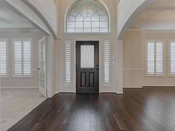 Step inside this stunning and spacious home and be ready to be WOWED! The first floor features dark hardwood floors throughout the living, dining and kitchen with an open-concept design. The gourmet kitchen is equipped with dark cabinetry, granite countertops, and stainless steel appliances, and it overlooks the dramatic two-story living room. This space is anchored by a stunning stone fireplace and a statement two-tier chandelier. The home includes a home office, game room, media room, and a bonus room within the primary ensuite. Outside, you'll find a spacious backyard and a covered patio, perfect for relaxing or entertaining. Highly-sought after location and zoned to excellent Katy ISD schools, with bus service provided and just minutes from all your everyday conveniences (groceries, dining, gas stations, daycares, and more). This home offers easy access to major highways for a seamless commute. It's the perfect blend of luxury, location, and convenience! Schedule a showing today!