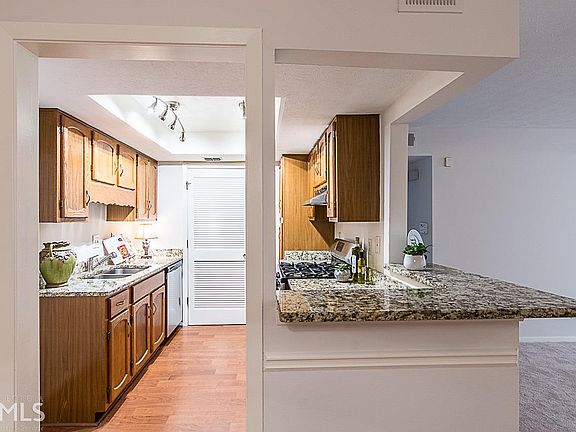 Unbelievable opportunity in Roswell for less than 150,000? YES! Parking lot level 2 bedroom, 2 bath end unit condo with NEW CARPET, WOOD FLOORS, NEW PAINT! Also- NEW WINDOWS, HVAC! Well maintained unit in the heart of East Roswell! Minutes to dining, shopping and 400! Great for nature enthusiasts- near the river and parks! Kitchen boasts new gas stove, granite counter tops! Sunroom off of the family room is perfect for a home office! Split bedroom plan-great for roomates! Private porch looks out onto beautiful wooded area! Hurry! This won't last long!