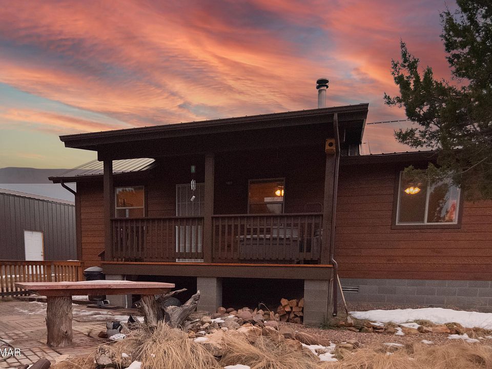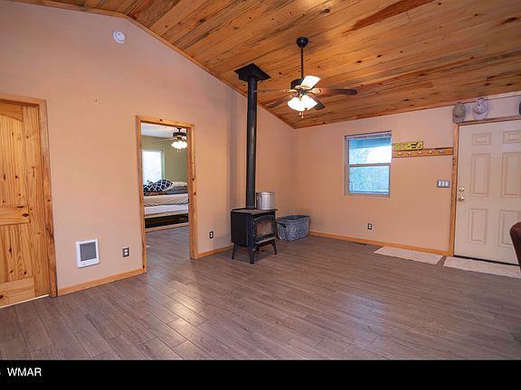 Don't miss out on this gem of a cabin with so many possibilities! Situated on 1 acre, fenced yard, gazebo, large detached garage, shed, carport, horse property, no HOA, site built homes only! There are so many possibilities here. The cute cabin is a spacious 1 bedroom, 1 bath, w/ large great room and living area and a laundry room & central heat and AC, and a bonus is its connected to a 3 bedroom septic should you wish to expand in the future.